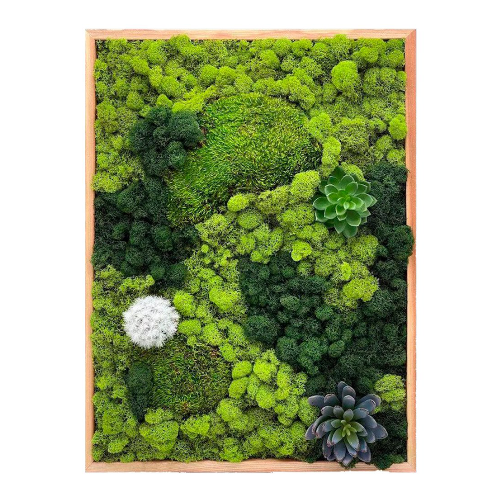 Acusorb® Vita biophilic acoustic moss panels are our range consisting of 100% authentic and preserved moss suited for wall application. These biophilic modular acoustic panels, when grouped together offer superb visuals with unquestionable green credentials and when incorporated correctly within a design can look outstanding using various texture options and colours variations. Acusorb® Vita biophilic acoustic moss for walls are a stunning solution for when you need to achieve that totally natural look whilst incorporating exceptional noise control. These moss acoustic panels are best installed with an air gap behind and an acoustic mineral fibre to create the perfect looking acoustic wall art with absorption characteristics that cover many frequencies, mid low, mid to high. A perfect acoustic solution for when an organically grown, hypo-allergenic solution is preferred. Acoustic Moss panels are generally mounted on a FSC rated timber cassette creating a small resonant chamber, a perfect accompaniment to any internal space where reflective sound is an issue. Suited to control sound in atriums, break-out areas, hotels, restaurants, reception areas and offices.